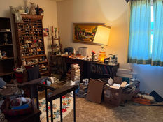 Maytag Epic Z washing machine (front load); Whirlpool electric clothes dryer; Frigidaire 16.5cf refrigerator (top freezer, white); Whirlpool chest freezer; dining table (6 chairs) matching hutch; pier mirror; LazyBoy recliners (x3); lift chair; end tables (x2); gun cabinet (6 gun); Electone F35 organ; lamps; three drawer chest; afghans, blankets, misc bedding; books; sewing supplies (thread, scissors, machine, etc); yarn; vacuums (x3, Shark, Bissell, etc); camping chairs(x2); invalid items(shower chair, walker, etc); Zoomer electric chair, adjustable hospital bedframe(no mattress); Coleman coolers; misc cleaning supplies; Sears 10x50 binoculars; kitchen appliances (hand blender, can opener, mixer, blender, juicer, crock pots, more); Tupperware; utensils; flatware; Corelle (48pcs, plates, cups, saucers, bowls); kitchen knives (butcher including CaseXX, Ontario, etc, plus paring, steak, others); usual run of pots, pans, and related; cookbooks; pie plates; bake ware; cast iron skillets (x6); Currier and Ives dish set; seasonal decorations; CD’s, 8tracks; and much more to be added by sale day! Come see!