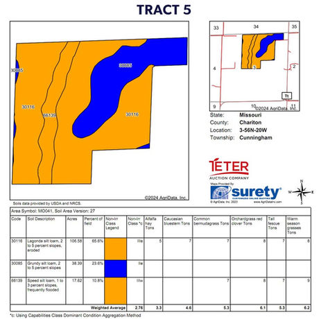 Tracts 2-7 are located approximately 7 miles southwest of Brookfield, MO or 7 miles northwest of Rothville, MO off black top Hwy TT along the Linn & Chariton County line. Land is further described as being located in Section 35, T57N-R20W, Brookfield Township, Linn County, Missouri and Section 3, T56N-R20W, Cunningham Township, Chariton County, Missouri.