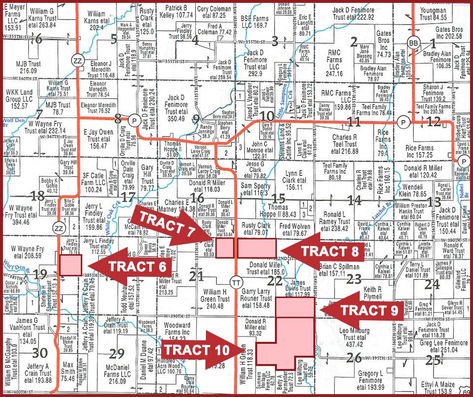 Tract 6 is located approximately 4 miles north of McFall, MO off blacktop Hwy ZZ. Tracts 7-10 are located approximately 8 miles northeast of Mcfall or 8 miles northwest of Pattonsburg, MO. Land is further described as being located in Sections 19, 20, 21, 22, & 27, T62N-R29W, Butler Township, Harrison County, MO.